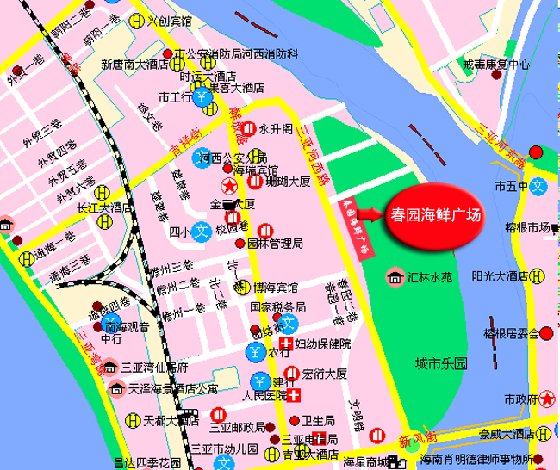 地址:春园海鲜广场在河西春园路,从大东海方向过了三亚大桥,延西河西路一直向北就到了。
